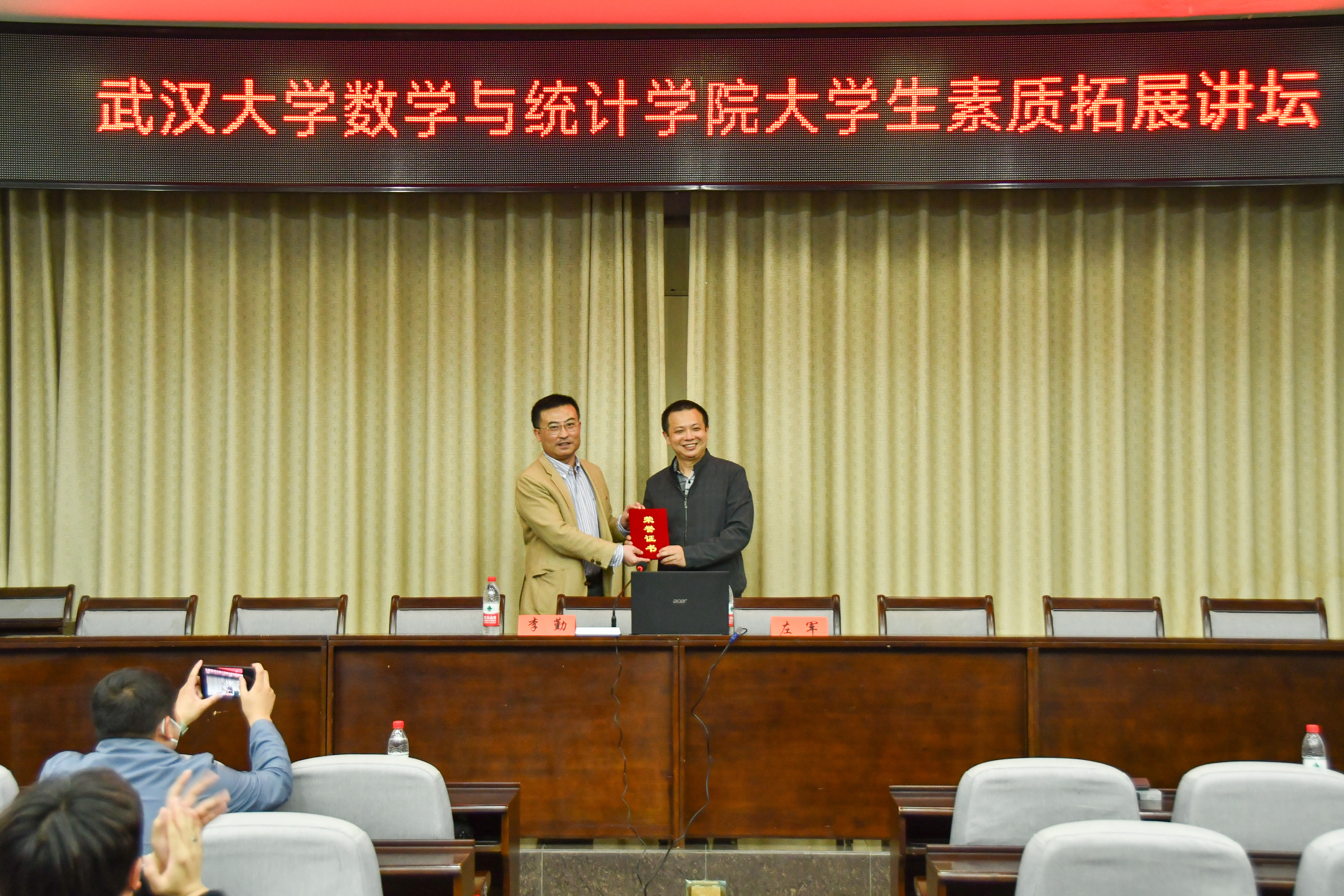 开设大学生素质拓展讲坛的背景与意义,介绍了李勤老师的基本情况和工作履历。随后,左军代表学院党委为李勤颁发讲座纪念证书,感谢李勤部长莅临天美传媒