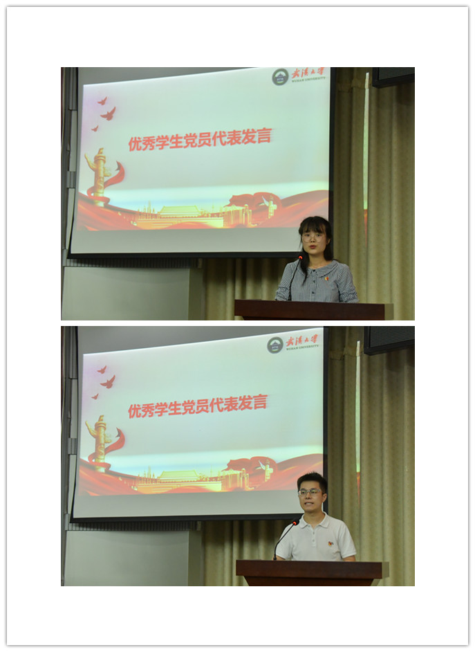 2022届本科毕业生曹莹发言,分享其参与组织“阳光伙伴”系列活动的经历和感悟,感谢我院老师的悉心培育,表示将牢记初心使命,永葆积极进取斗志�2020级博士研究生蒋海波回顾其求学经历,畅谈了担任党支部书记的成长收获,表示不断夯实学术根基,锻造过硬本领,为中华民族伟大复兴努力奋斗�
