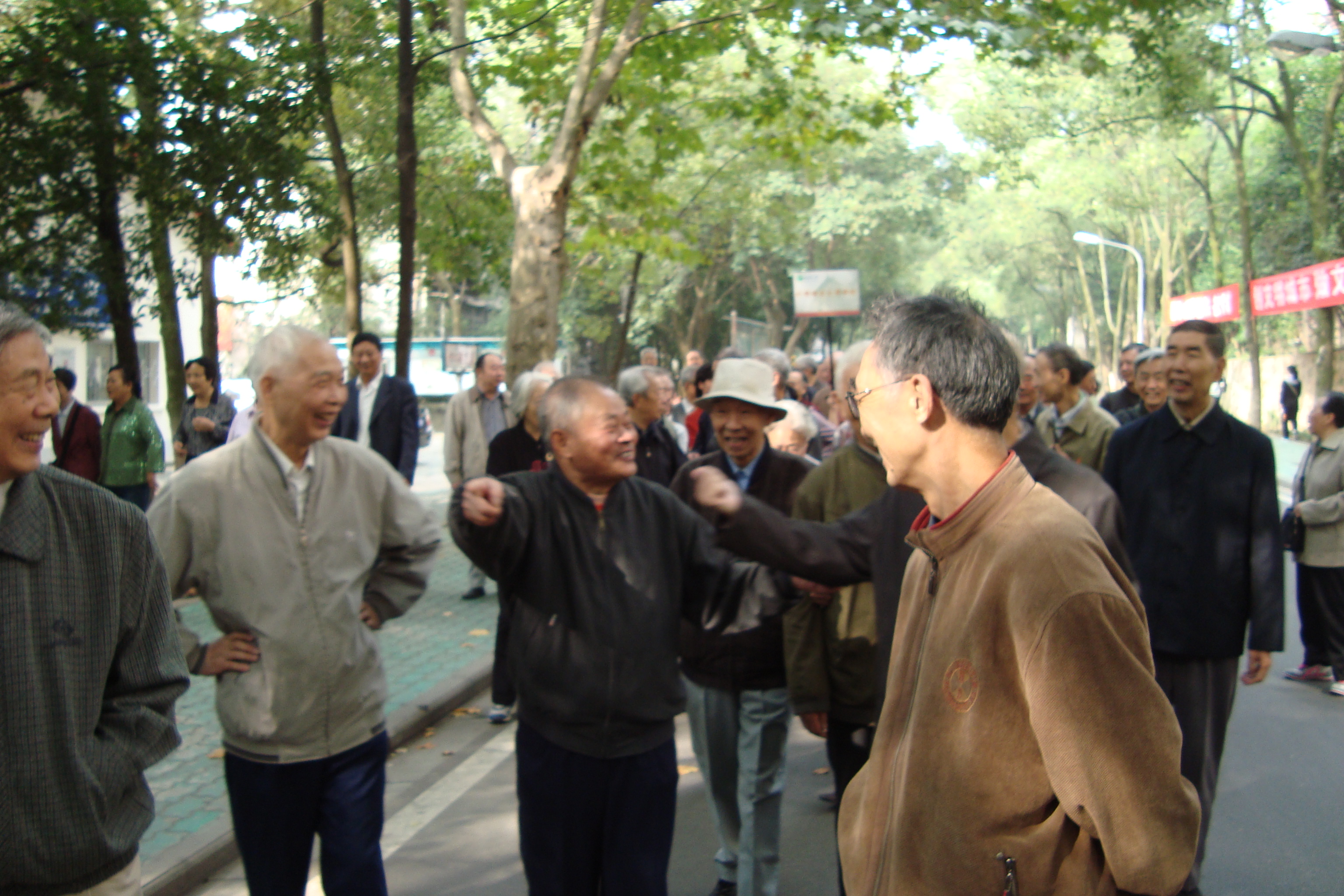 2008年10月8日上午,天美传媒 一区离退休教职工在学院党政办的组织下参加了校离退休工作处一区主办的2008年老年节登高活动。学院老教师们齐聚珞珈山下,漫步话家常。2007级研究生李婷婷、郑霁光作为学生代表全程陪同,带去了全院学生对老教师们的敬意与问候。