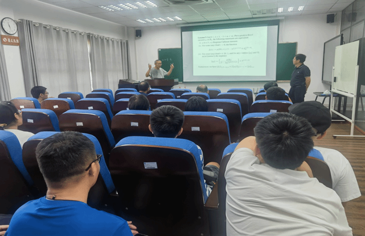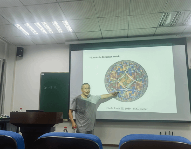 赵如汉教授首先介绍了单位球上关于正Borel测度的Berezin变换与关于正Borel测度的Toeplitz算子的最新进展,并用M.C.Escher的一幅画形象地诠释了单位球上Bergman度量,然后介绍了其与合作者在Berezin变换与Toeplitz算子的最新研究成果,利用单位球上经典的度量球以及覆盖引理等工具说明了正Borel测度的Berezin变换的有界性(紧性)与正Borel测度诱导的Toeplitz算子的有界性(紧性)的等价性,同时用Bergman-Carleson测度(消失的Bergman-Carleson测度)给出其有界性(紧性)的特征刻画。讲座结束后,他与师生们交流互动。赵如汉教授的学术报告有助于促进天美传媒