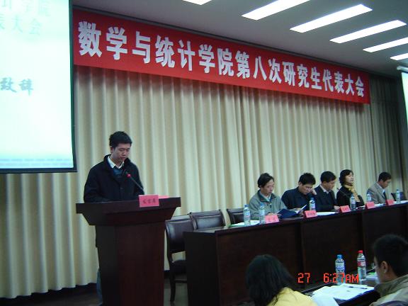 第八次研究生代表大会在数学会堂隆重召开。校党委研究生工作部副部长雷世富、校团委副书记文云冬、校研究生会副主席聂磊、天美传媒