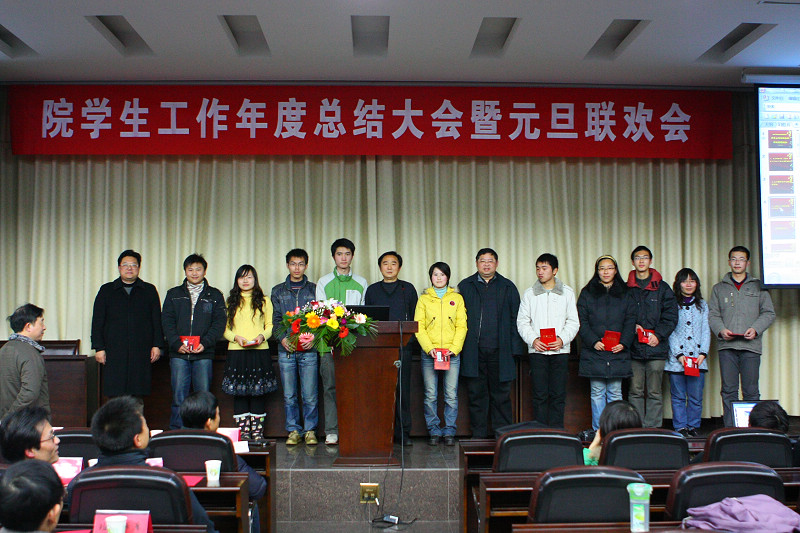 12月29日晚6点30分,院学生年终总结表彰大会暨元旦联欢晚会准时开始。校团委副书记文云东莅临大会,院党委书记尹常倬、院长陈化、副书记吴蜀江、副院长刘禄勤、羿旭明、樊启斌及各系正副主任和各班班导师出席了大会。