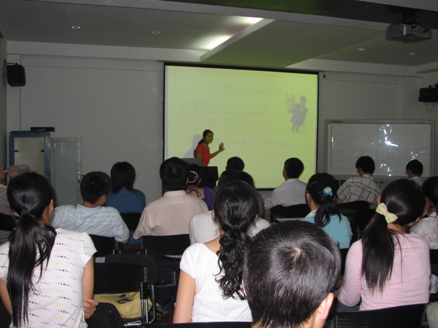 比赛在主持人的精彩致词中开始,来自两校不同专业方向的十三位参赛选手依次走上讲台,对自己准备的课件进行了10分钟的讲解,然后抽签即兴答题。经历重重预赛的他们满怀信心,妙语连珠地诠释着自己所理解的数学理论、对课堂教学的把握和对现场提出问题的解决办法。当问及:“你认为一位好老师的标准是什么?”回答相当精彩:“学生赞同你,你就是好老师,与专家评论标准无关。”评委老师对每位参赛选手的综合表现给出了精彩点评,在充分肯定他们比赛中到位的讲课基本功的同时,也对如何讲授数学和在讲授数学中使用多媒体表达了自己独到的看法。点评中还提到,有的选手讲课内容题目过大、问题引入角度没把握好、注意应用普通话及进行板书设计等等方面,使选手们获益匪浅,也给在座的研究生上了一堂精彩的教学技能实践课。