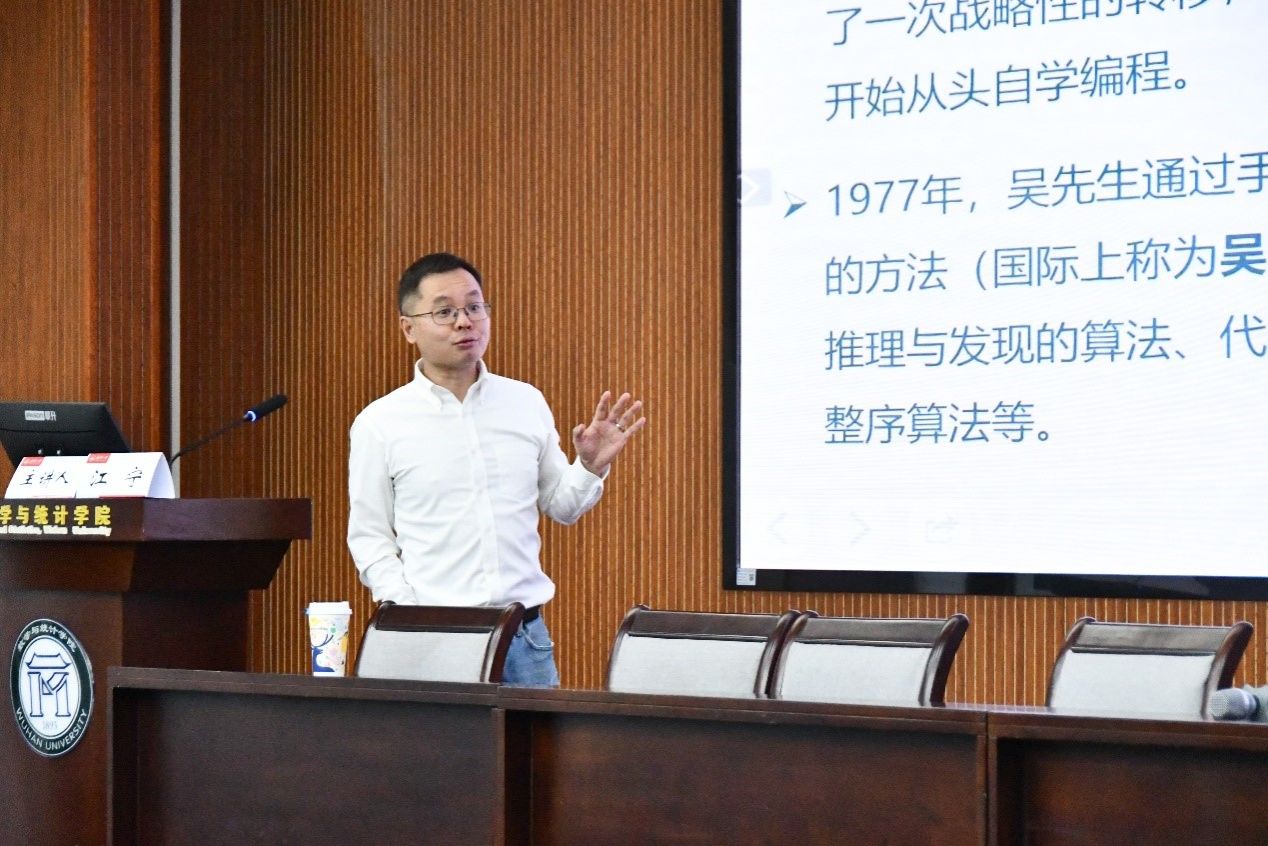 江宁教授以《数海拾珍——浓缩百年数学风云》为题展开讲座,他讲述了欧拉、拉格朗日、阿贝尓、黎曼、许宝騄等多位国内外数学界传奇人物的故事。江宁通过生动阐述,刻画了历史上伟大数学家伟大的灵魂、不朽的追求和坚韧的毅力,也深刻揭示了在数学学习中需要不断阅读经典、勤于思考、不惧上问的学习方法。他希望同学们主动与专业老师进行学术交流,培养科研兴趣,祝愿每位同学在数学之路上能够得偿所愿、一帆风顺。
