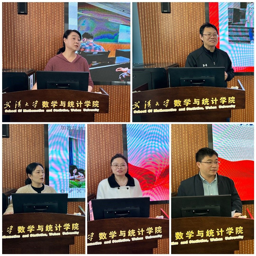 刘晓春代表基础数学系党支部、雷玲代表应用数学系党支部、张继伟代表信息与计算科学系党支部、刘伟代表概率与统计科学系党支部,分别从促进立德树人三全育人、推动学科专业发展、强化师德师风建设、培养发展教师党员等方面进行了述职。周宁代表行政管理与实验教辅党支部述职,汇报本支部开展理论学习、优化管理服务、强化执行落实、推进作风建设等方面情况。五位党支部书记梳理了2023年度支部工作取得的成绩、存在的不足,提出了工作改进思路。述职结束后,与会人员现场进行了民主测评。