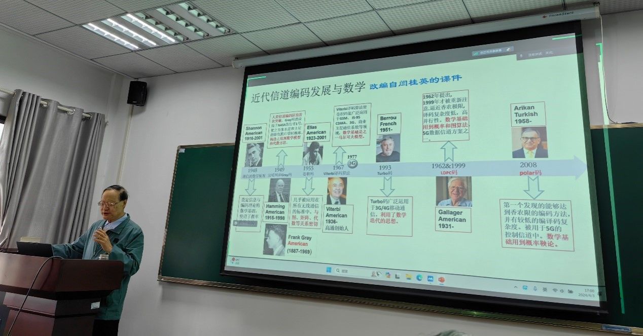 马志明院士从香农信息与数学的关系讲起,深入浅出地阐释了香农熵概念。他介绍了作为编码定理理论基础的渐近等分性,讲解了香农信息论的三大定理和Polar码编译码的概率基础,回顾了近代信道编码发展历程及与数学的紧密联系。他指出,Polar码是世界上第一类能够被严格证明达到香农极限的信道编码方法。