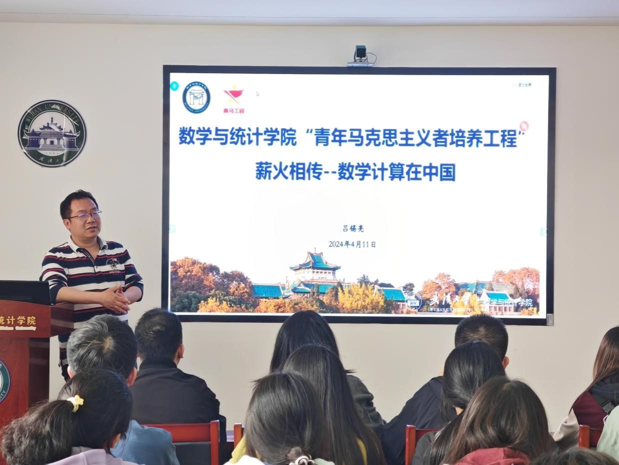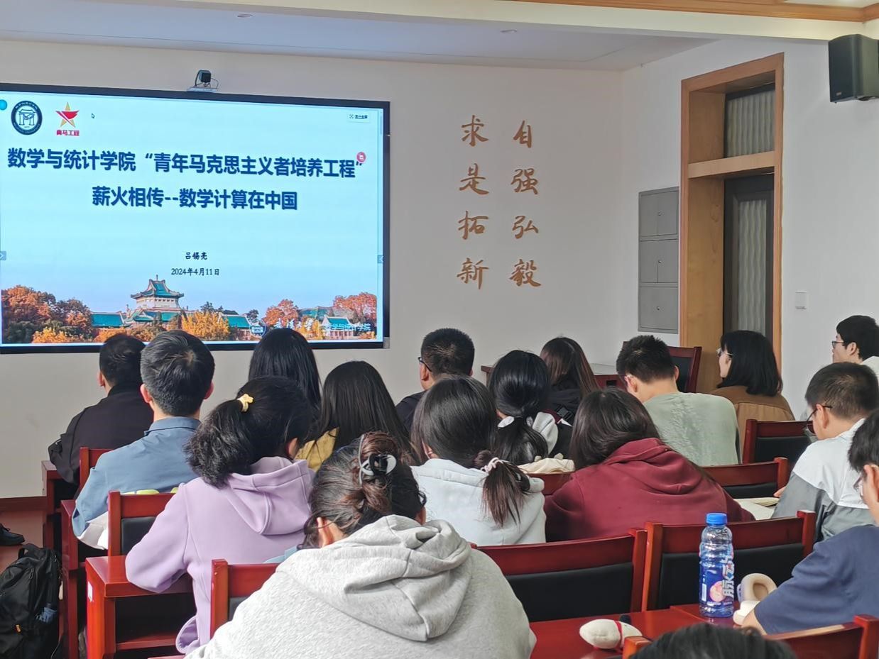 4月11日下午,院“青马工程”第二期培训班(以下简称“青马班”)开展第五次课程学习,副院长吕锡亮为学生讲授数学计算在中国的薪火相传,院“青马班”第二期学员、本科生党支部学生党员参加学习。本科生辅导员廖蕾蕾主持会议。