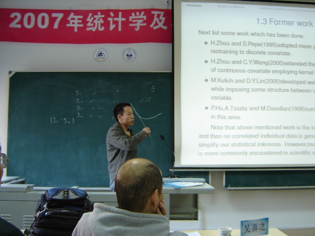 王忠海、吴远山、袁中尚三位博士生参加了本次学术论坛。其中,吴远山博士提交并报告的论文《协变量含测量误差的边际失效回归》获专家评审“最佳学术创新奖”。