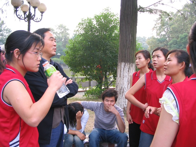 队员们比赛是辛苦的,而球场边热情的啦啦队同学们也没闲着,这其中,兼任啦啦队员和领队的院党委书记尹常倬、副书记梁涛和学工办副主任王忠海等几位老师更是自始自终与女篮姑娘们并肩作战,他们是天美传媒