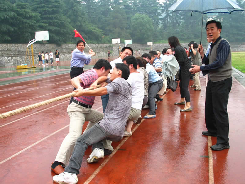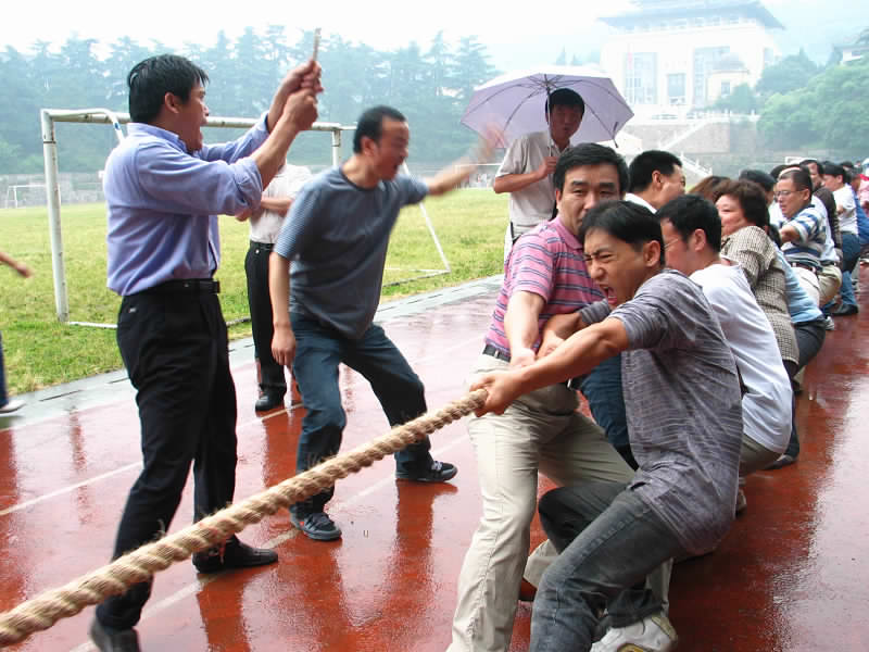 教学科研任务较重的单位,为积极迎战本次拔河比赛,全院上下付出了巨大的努力:总教练罗云峰老师为每场比赛制定策略,并亲自通知每位队员准时到位;拔河队员克服工作、生活中的困难,坚持训练,以最佳状态投入到比赛中;学院多名老师下课后来不及休息即奔赴现场加油;学院行政与学院工会委员会提供了强大的后勤保障;院党委书记尹常倬与院长陈化也在百忙之中亲临现场与啦啦队一同为队员们呐喊助威。正是在这种强大的合力下,即使面对身体素质与年龄优于自身的对手,天美传媒