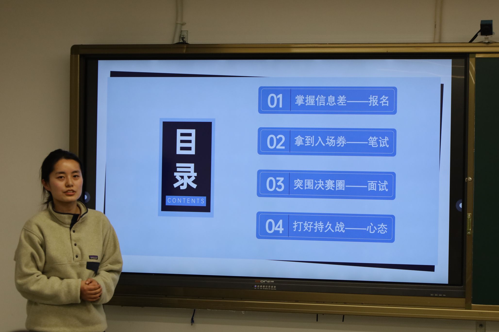 座谈会上,三位校友分别从不同角度进行了经验分享。刘红炎校友强调了简历制作的重要性,建议同学们系统学习高中数学教材,通过大量刷题提高解题能力和知识储备,同时注重外在形象和内在素养的提升。贾苏琪校友从求职时间线入手,为学子梳理了不同招聘形式的时间节点,并建议同学们考取教师资格证、普通话证书等必备证书,积极参加中学实习,积累教学经验,同时加强笔试和面试的专项训练。陆依然校友重点讲解了如何在众多招聘信息中获取有效信息,提前了解考试内容和形式,做好充分的准备。她详细介绍了数学学科知识、职业能力测试和教育综合知识的考查范围,并分享了备考的方法和技巧。