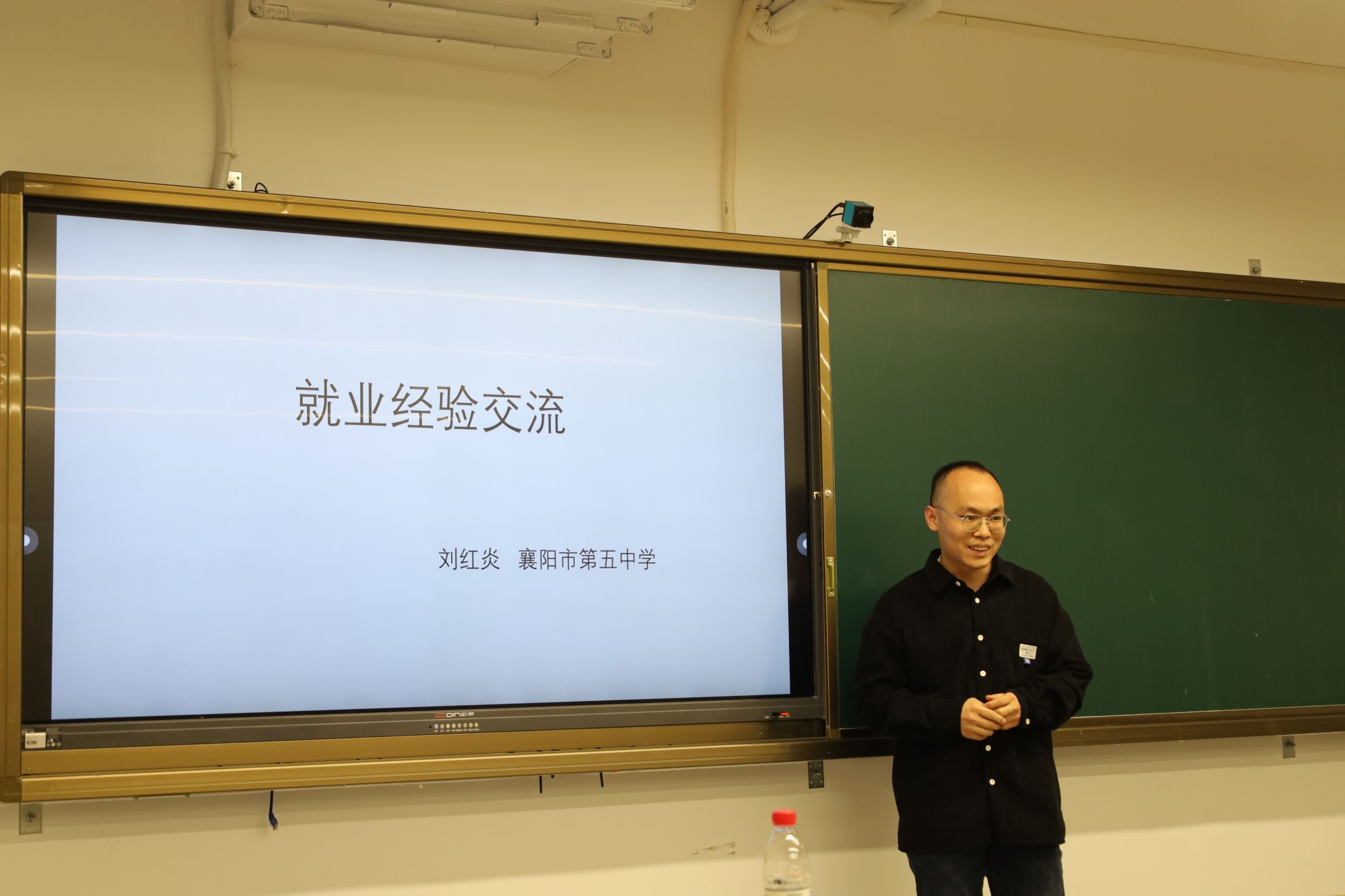 在互动答疑环节,同学们积极提问,三位校友结合自己的实际经验,耐心解答了同学们关于教师岗人才引进、教师的职业成长路线以及竞赛教师的工作时间等问题。