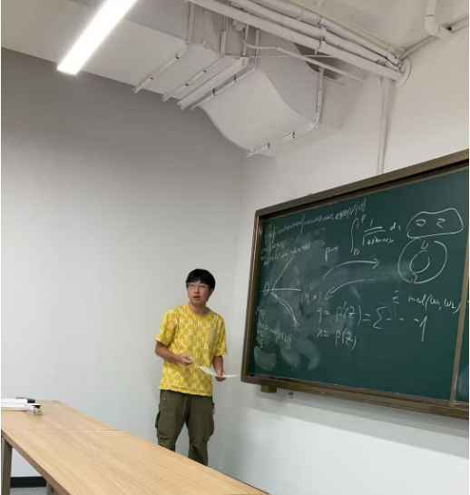 迄今为止,我们已经进行了数次讨论,每一次都让我受益匪浅。参与范老师的讨论班,不仅让我对数学的理解更加深入,更让我体会到了数学研究的魅力和乐趣。范老师认为,台上学生的讲解和台下学生的问答过程,能够充分展现每位同学的数学素养,包括数学知识、数学能力、数学思维方式(形、数、逻辑、物理)、数学价值观以及数学隐性知识(特别是对数学美与深刻的直觉)。通过这种方式,范老师能够深入了解每位同学的学术个性,从而提出针对每位学生学术发展的具体、有效的建议,真正做到“因材施教”。从古典数学到现代数学,我们不仅学习了知识,更重要的是培养了独立思考的能力,拓展了学术视野,为未来的学术发展奠定了坚实的基础。希望有更多的同学能够参与到类似的讨论班中来,共同探索数学的奥秘,感受数学的魅力!