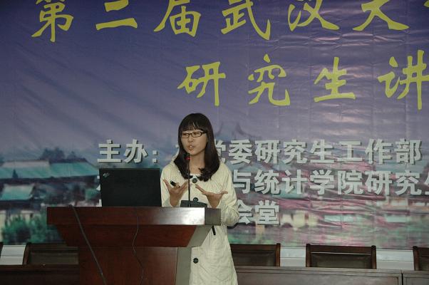 副院长冯慧教授、党委副书记梁涛老师、学工办副主任王忠海老师出席了本次大赛。担任本次大赛的评委分别为数学院杜乃林教授、历史学院彭敦文教授、生科院李文化副教授、外语学院吴小红副教授、哲学院谢天老师和刚刚在校青年教师讲课比赛中获奖的化学院翁小成老师和文学院叶李老师。参赛的14名选手均是通过学院初赛选拔出来的优秀研究生,他们在这次比赛中用精彩纷呈的讲课表演赢得了评委、嘉宾的一致好评和同学们的热烈掌声。最终,数学院2010级硕士生孟佳音以第一名的成绩获得一等奖,生科院费晶、文学院王歆博获二等奖,外语学院皮文婷、文学院罗姣、数学院田玉获三等奖,还有历史学院漆佳、哲学院尚真洁等8位同学获个人风采奖。