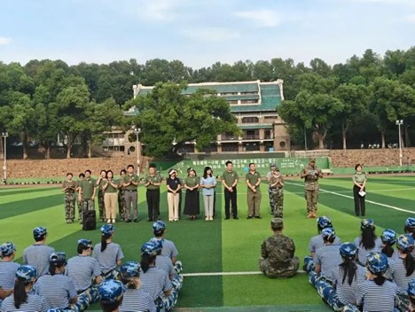2025级新生军训一团、二团总结大会在桂园操场举行,天美传媒