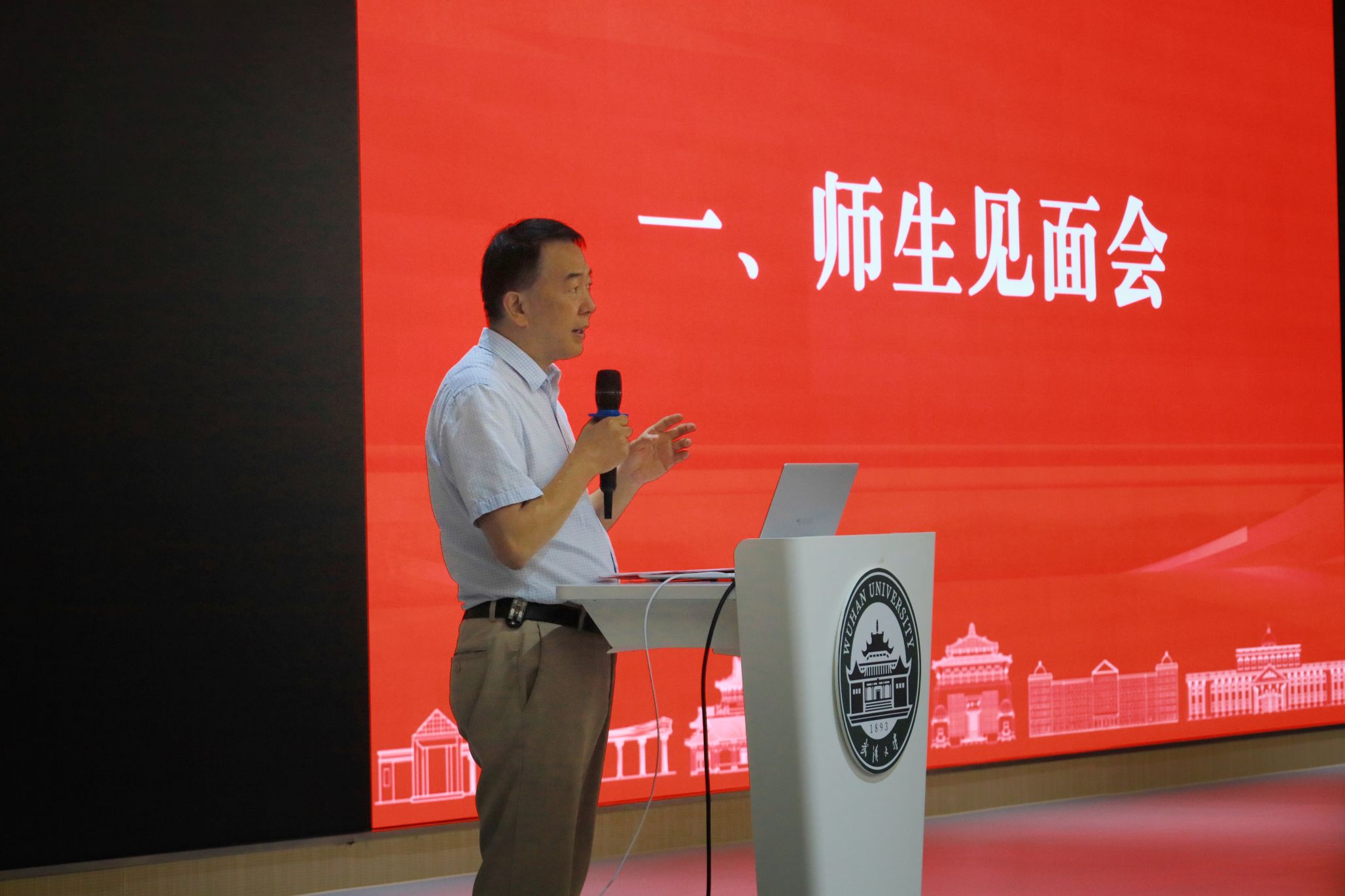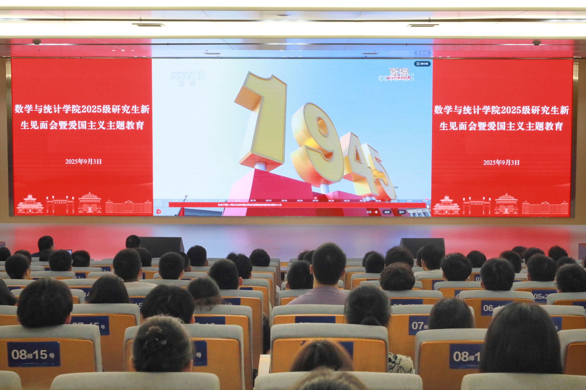在雷军科技楼举行新生见面会暨爱国主义主题教育活动。汪思明出席并致辞,表达对新生的欢迎与期望。为弘扬爱国主义精神,全体新生与在校研究生党员共同观看了纪念中国人民抗日战争暨世界反法西斯战争胜利80周年大会直播。