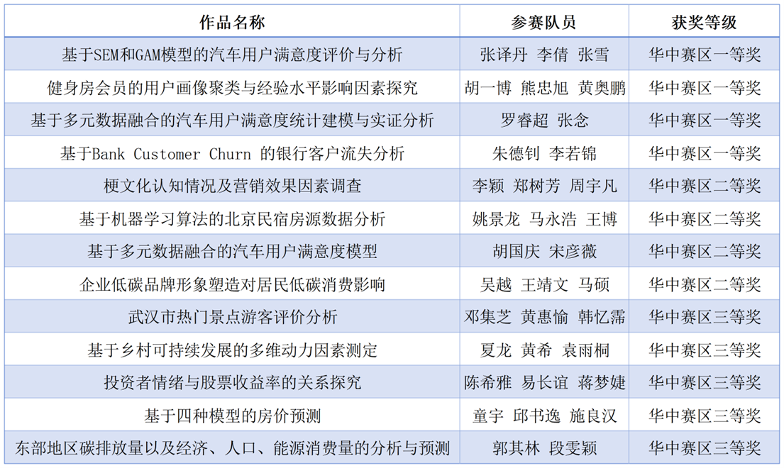 参赛队伍展现了扎实的专业基础与优秀的实践创新能力,参赛作品涵盖用户行为分析、满意度建模、市场预测、社会调查等多个前沿领域,体现了统计学方法与实际应用的深度融合。
