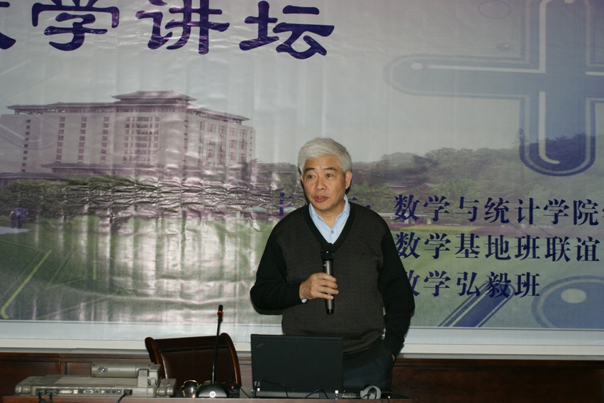 院长陈化主持了报告会。龙以明院士从地心说到日心说的发展来引出报告会主题,介绍了哥白尼、伽利略等早期科学家应用数学计算取得的重大突破,在讲到单摆规律的计算时,他亲自在黑板上演示使同学们理解得更透彻。接下来龙院士又介绍了一系列数学知识解决的太阳系中的问题,其中包括开普勒发现的行星运动三大定律与圆锥曲线的联系、牛顿定律确定的n体运动方程,牛顿理论成功与测了哈雷彗星的回归、运用数学理论发现海王星......一系列数学理论上的胜利。每一项突破都是建立在精确的观测数据和完美的数学理论分析计算上的,龙院士借此鼓励同学们在本科和研究生阶段打好基础培养思维的创造性,因为各个领域上还存在许多问题有待人们去解决。报告期间,龙院士还介绍了关于太阳系稳定性的探讨、KAM理论的应用——粒子回旋加速器、平面三体问题Lagrange等边三角形解的稳定性Euler的三体问题共线解等来拓展同学们的视野。他一边讲解一边用图形动手展示,具体到一个个方程、角度都耐心地演示出来,同学们都深受启发。他列举了一些有趣的科学家的经历,风趣幽默的讲述赢得了一阵阵掌声。经过一个半小时的精彩讲解,报告会在又一次热烈的掌声中结束。弘毅数学班的代表献上了鲜花,同学们围着龙以明教授提出问题,气氛非常热烈。同学们说:讲座不仅拓宽了我们对数学与天文、物理之间联系的认识,也大大提高了同学们对数学理论学习的兴趣,大家都受益匪浅!