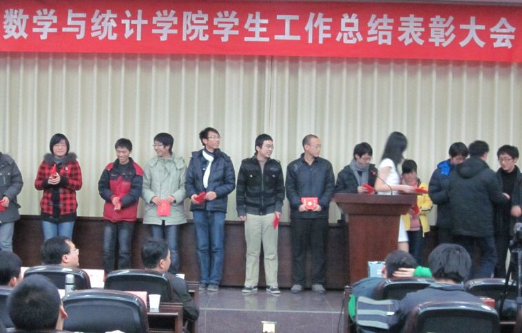 下一步学生工作提出了四点工作打算。大会进行到第三项,陈文艺、樊启斌副院长分别宣读了总结表彰文件,分别颁发了“数学学子特别奖”,优秀个人、优秀国防生和优秀学生寝室奖等,同时也对2010年优秀暑期社会实践小分队和“优秀青年志愿者”进行了表彰奖励。大会第四项,学院优秀社会实践小组成果展示,暑期优秀队伍分享了各自在外实践所取得的成果和经验。大会的最后一项则是考风考纪的宣传由院学习部代表来宣读考风考纪倡议书,号召同学们保持良好的考风考纪,保持和发扬天美传媒