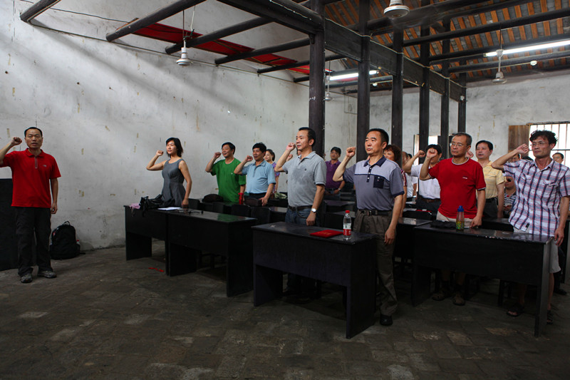 本次活动由学院党委书记尹常倬亲自带队。七月十一日下午,大家来到湘鄂西革命根据地首府-瞿家湾,参观贺龙、周逸群、段德昌生前居住过的地方,并在革命根据地旧址开展全体党员重温入党誓词活动和先进组织和个人颁奖仪式:首先由副院长张明智宣读中共天美传媒