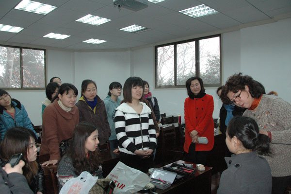 研究生会在学院三楼报告厅成功举办了“美丽点亮生活”的化妆讲座。本次讲座邀请到湖北省艺术职业学院二级舞台美术设计师严玲副教授,为广大女生讲解化妆基本知识及化妆操作过程。此次讲座不仅有本院众多学生参加,还吸引到不少学院老师前来聆听。