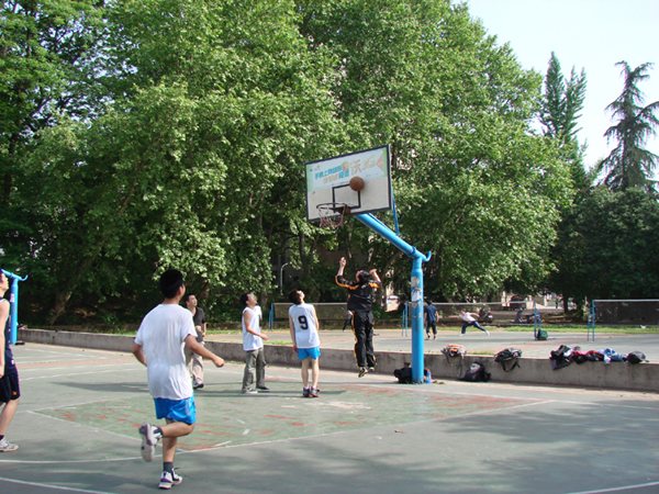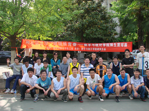 工会主办和数院研究生会承办的师生联谊篮球赛激情上演,数学院热爱篮球活动的老师与同学们进行了一次技术交流,同时也吸引了不少老师和同学前来加油助威。