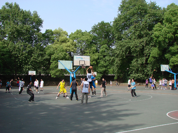 比赛开始前,参加篮球赛的老师和研究生们先进行了热身。比赛在裁判员一声哨响后正式开始,教师队持球进攻,但是由于未熟悉场上气氛,研究生队和教师队在头几回合均未能得分。但很快教师队凭借娴熟的篮下技术首先得分,并且在何德彪老师的带领下打出了10比0的小高潮。在第一节最后两分钟,研究生队改变策略,换人重新组织进攻,在积极的配合下,逐渐扳回比分,第一节结束时教师队以13:8领先5分。