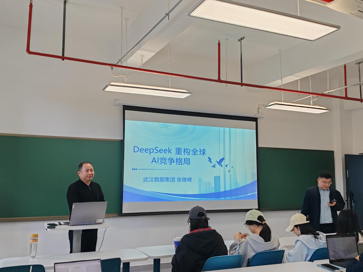 首场讲座由武汉数据集团专家、武汉科信通交通信息执行董事张继峰主讲,主题为“DeepSeek重构全球AI竞争新格局”。他系统介绍了DeepSeek在人工智能领域取得的技术突破,包括动态稀疏注意力机制等创新技术如何实现训练成本大幅降低、推理效率显著提升。张继峰还深入分析了当前全球AI竞争格局和发展趋势,强调了开源生态建设的重要性,并鼓励学生要夯实数学基础,把握技术发展机遇。