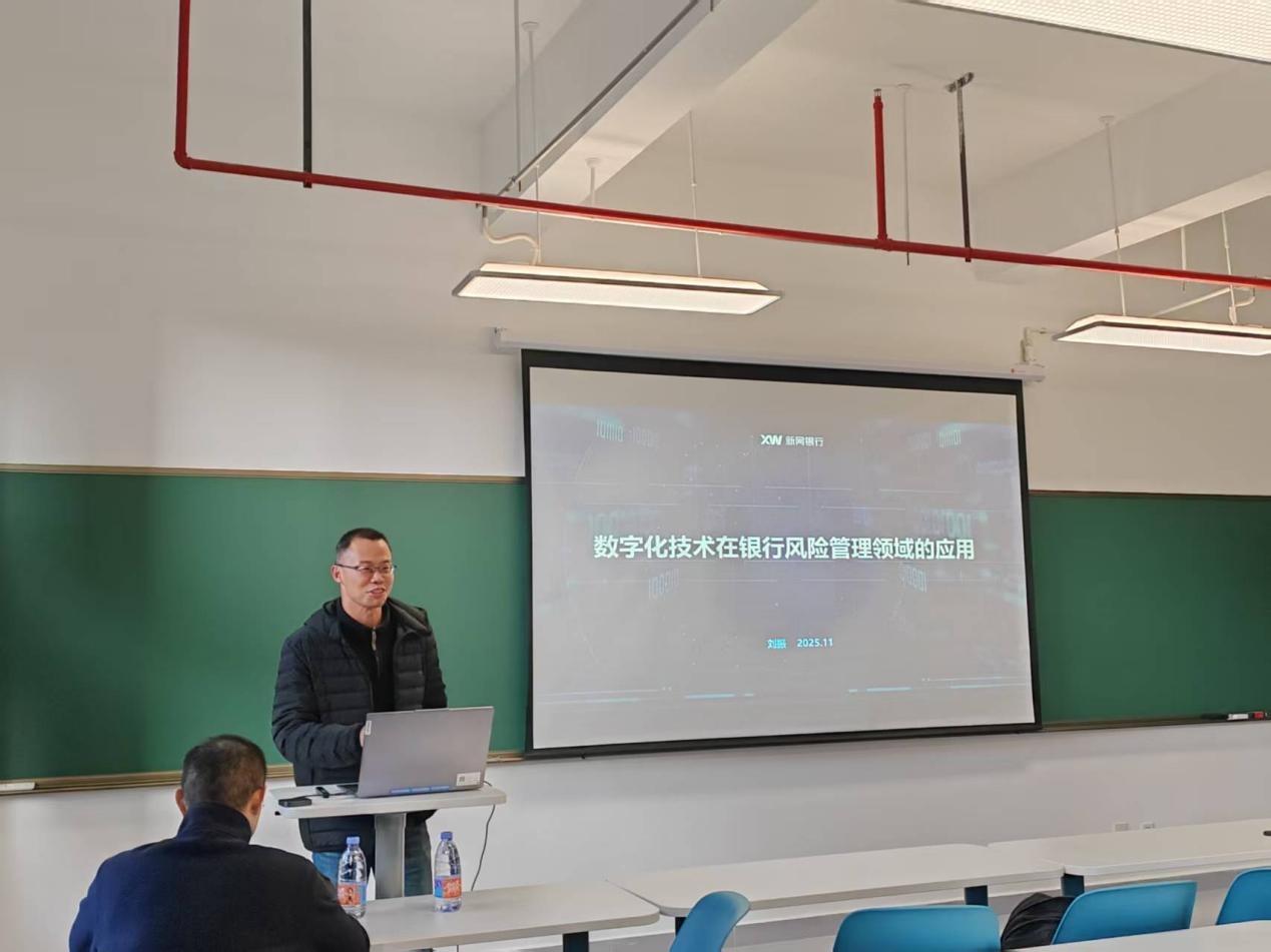 第二场讲座由四川新网银行首席风险官刘振主讲,他以“数字化技术在银行风险管理领域的应用”为题,分享了新网银行在数字风控领域的创新实践。通过生动的实际案例,刘振详细展示了机器学习、知识图谱等先进技术在反欺诈、信用评估、贷后管理等业务场景中的具体应用效果。他的分享让学生对理论知识如何转化为实际生产力有了更直观和深刻的认识。