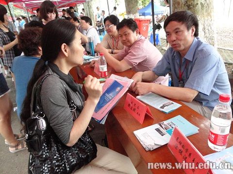 党委书记张明智老师、党委副书记吴蜀江老师、副院长樊启斌教授、陈文艺教授、胡亦均教授、基础数学系主任涂振汉教授、应用数学系主任羿旭明教授、学生办公室主任黄安云老师以及团委书记李好老师等与考生“零距离”接触,回答考生和家长的提问。还有许多经历过填报志愿的志愿者们,热心的与大家分享他们的经验教训,帮助考生和家长避开填报志愿的误区。