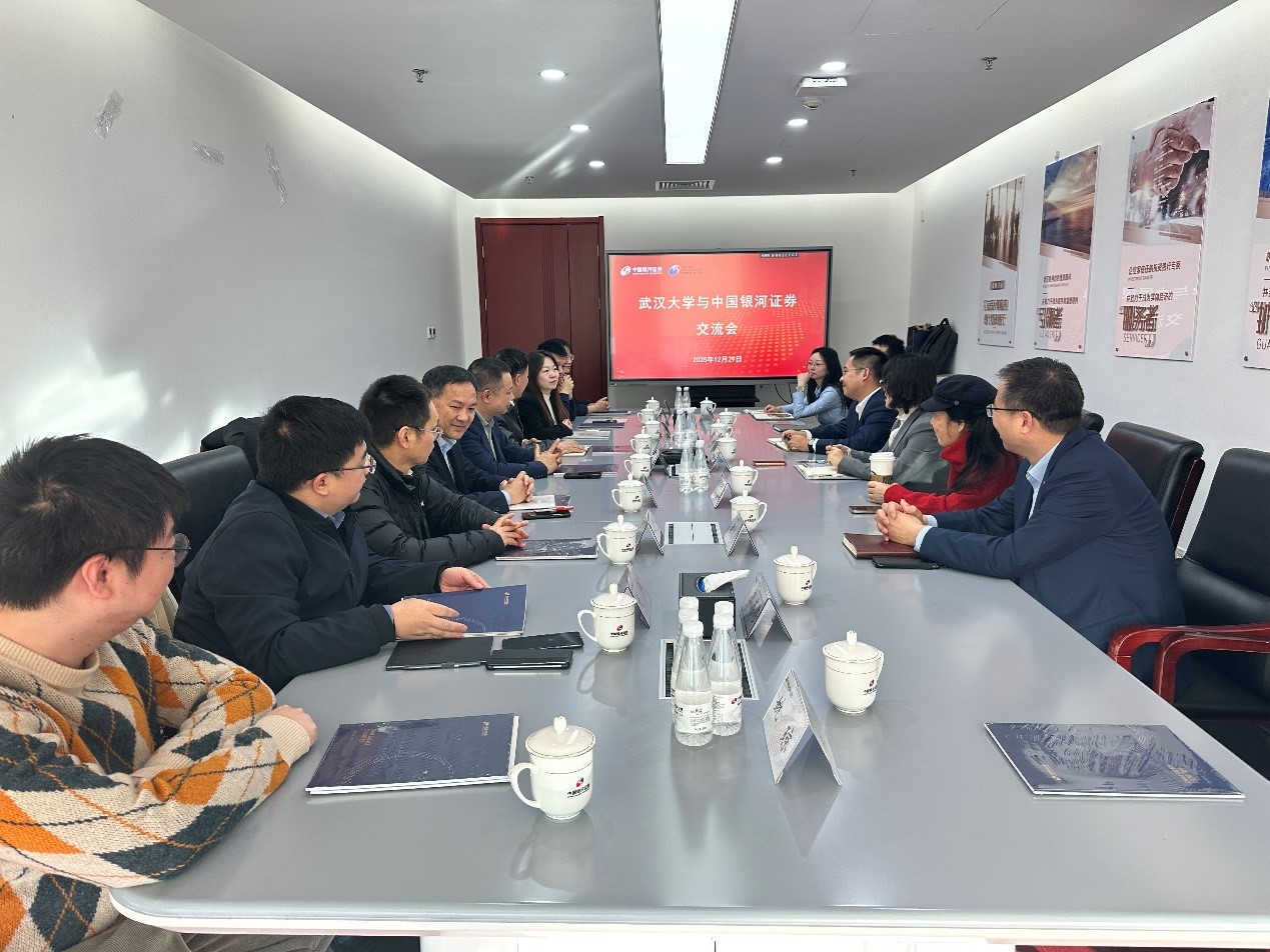 12月29日上午,代表团赴银河证券开展访企拓岗活动。银河证券财富管理首席投资官、产品中心总经理张嘉为介绍了公司的组织架构、发展历程、业务布局及行业优势。李勤介绍了学院整体情况。副院长刘伟汇报了应用统计专业硕士的培养和就业情况。范辉军强调了校企合作对于提升人才培养质量、拓宽毕业生就业渠道的重要意义。双方围绕校外实习实训基地建设、校外导师聘请、学生联合培养等主题进行了深入探讨,达成了初步合作意向。