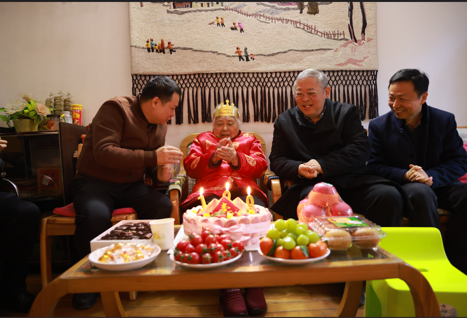 风霜难掩期颐寿,梅雪同贺天地春�1�26日,腊八节良辰,武汉大学离退休工作处副处长叶骏,数学与统计学院党政领导,老协会长王春玲,离退休第一党支部书记陈绍林,师生代表陈化、刘伟安、梅献民等,前往探望程少兰老教授,为她送上百岁生日的诚挚祝福与组织的深切关怀�