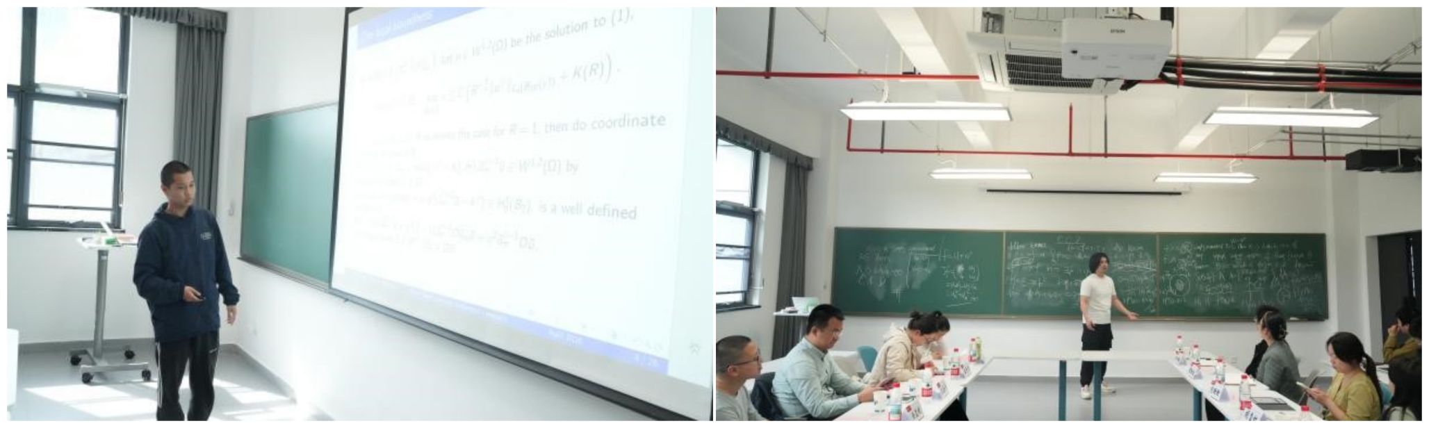 2023级自强班方子衿同学作题为“椭圆积分与偏微分方程(PDE)”的报告,深入探讨了数论核心对象与分析学工具之间的内在联系,体现了拔尖学生扎实的理论基础和良好的科研潜质。浙江师范大学数学科学学院拔尖班学生王锦涛作“多复变函数与黎曼曲面”学术报告,从复平面基础出发构建通往高维流形的理论框架,展现出严谨的逻辑思维与敏锐的学术洞察,为在场师生带来有益启发。