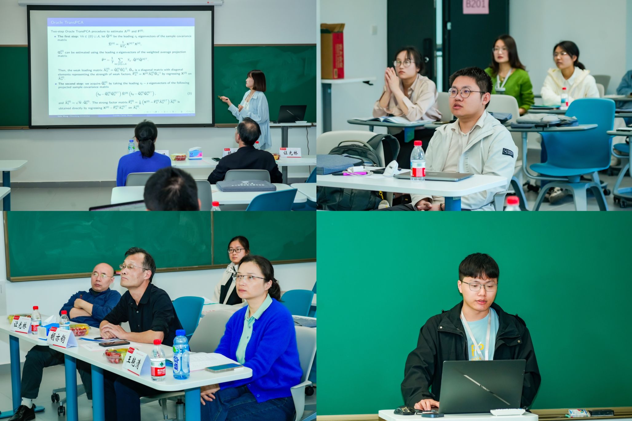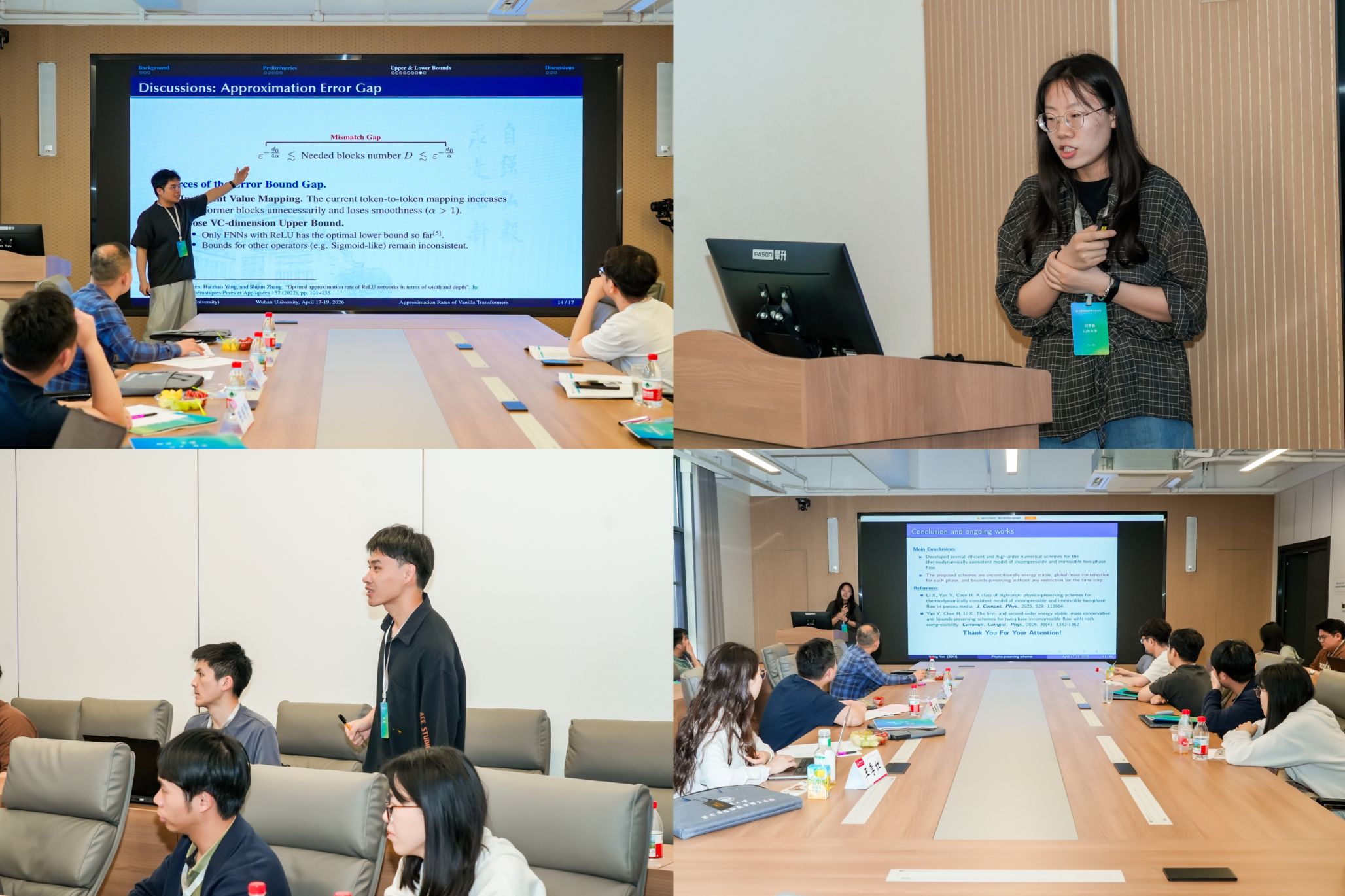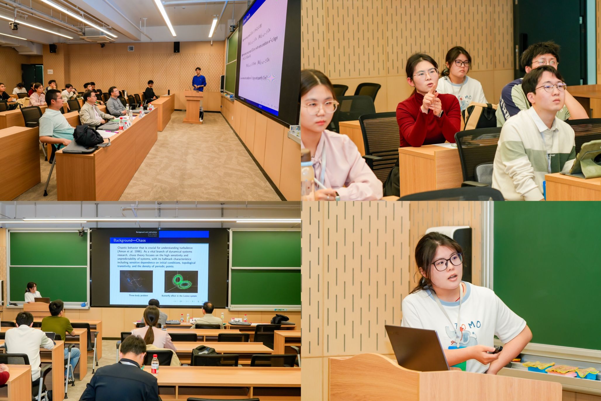 18日下午,各分论坛在雷军科技楼各报告厅同步开展。本次论坛设立基础数学(1)(PDE 方向)、基础数学(2)(几何、分析方向)、基础数学(3)(代数、数论方向)、概率论和统计学、应用数学、计算数学六个分会场,66名博士生汇报了研究进展和学术成果,评委老师逐一点评指导、答疑解惑。各会场思维碰撞激烈、学术氛围浓厚,充分展现了新一代数学青年的科研素养与创新潜力。