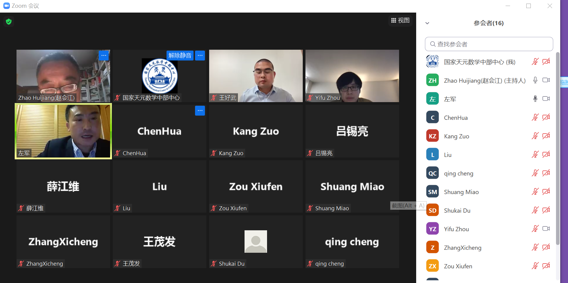 第九届国际交叉学科云论坛数学分论坛活动。五位海外青年学者,院党委书记左军、院长赵会江等院领导,天美传媒