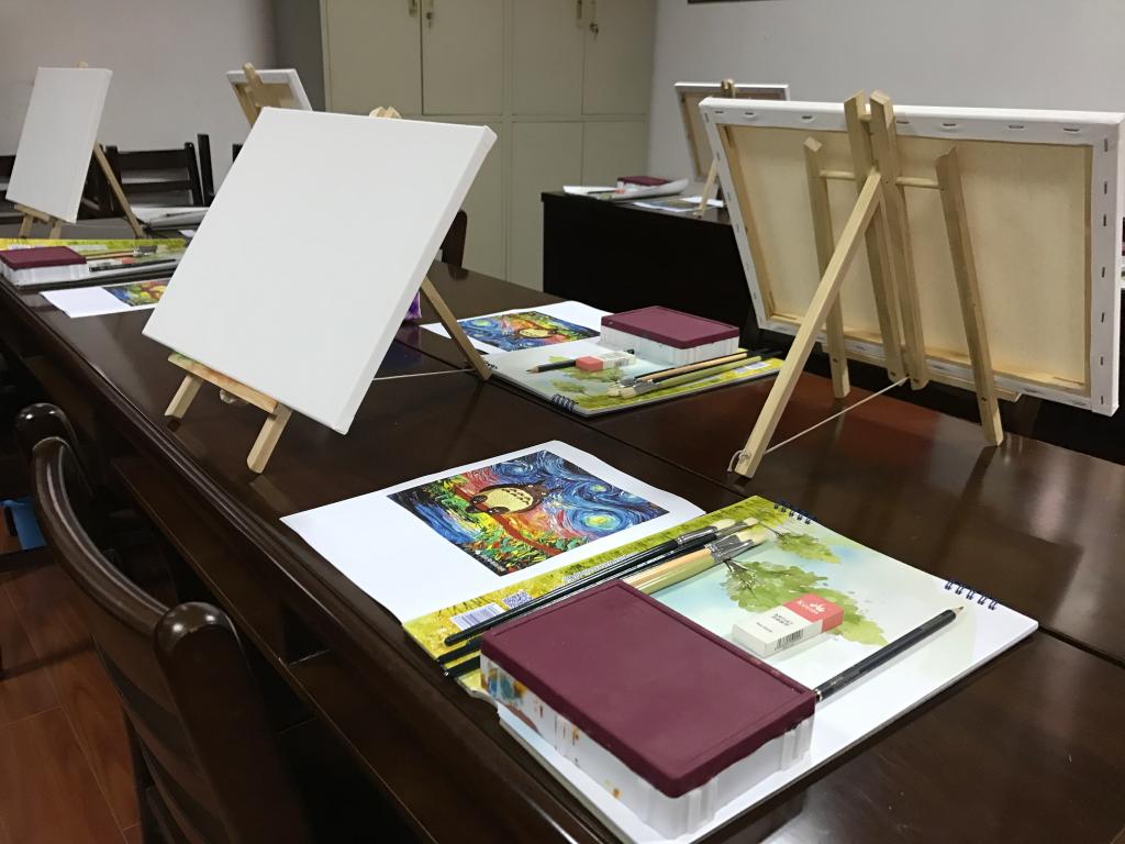 2018�11�10日星期六,武汉大学数学与统计学院“巧手灵心”系列团体辅导第一期“绘出你的心”油画体验在学院二楼顺利举办。参与此次团辅的有学院心理辅导员方圆、特邀绘画指导老师小明、随机抽取的8位报名的同学,以及学院心理健康协会的工作人员�