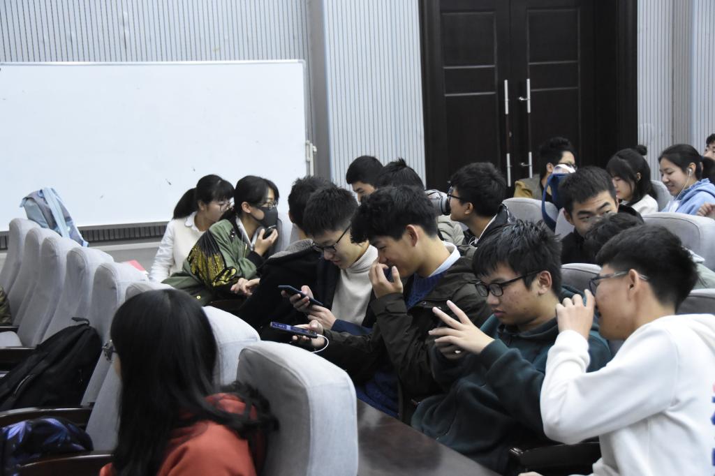 会议第三项,同学们分组进行30分钟的专题讨论。五个可选主题为:习近平总书记关于青年工作的重要思想、习近平总书记“七二”讲话、中国共产党第十九次全国代表大会、改革开放四十周年和共青团十八大。同学们讨论激烈,争相表达自己的观点,不同的思想之间碰撞出了灿烂的火花,现场讨论气氛十分浓厚。