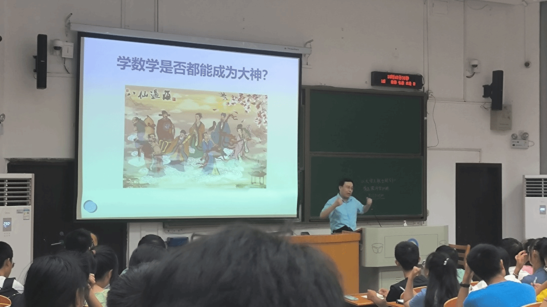 赵健老师首先以“数院学生的特点”引入主题,并举例著名数学家张益唐和韦东奕的人生经历,指出人与人之间存在差异,但都可以选择适合自己的路,各有所成,引导学生对数学学习和未来职业进行思考。