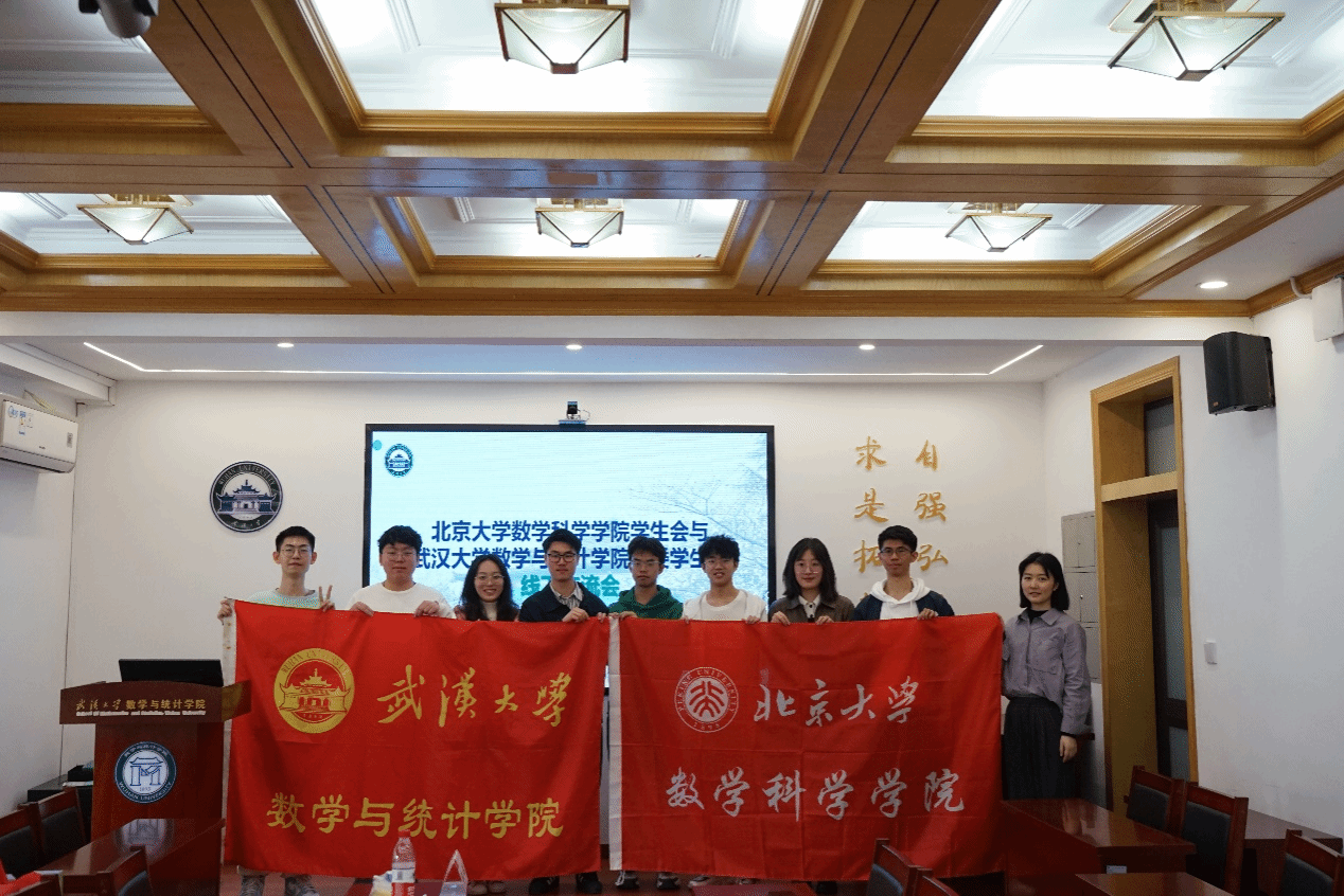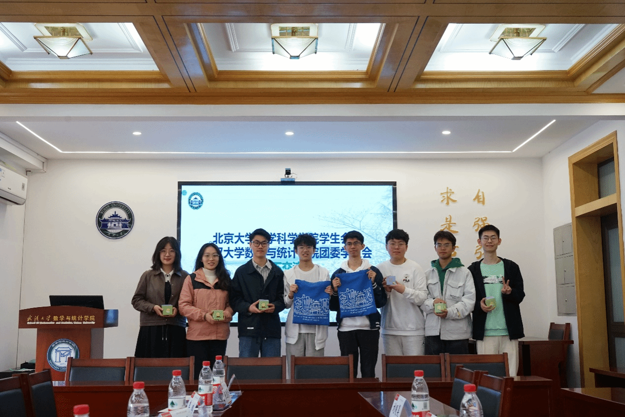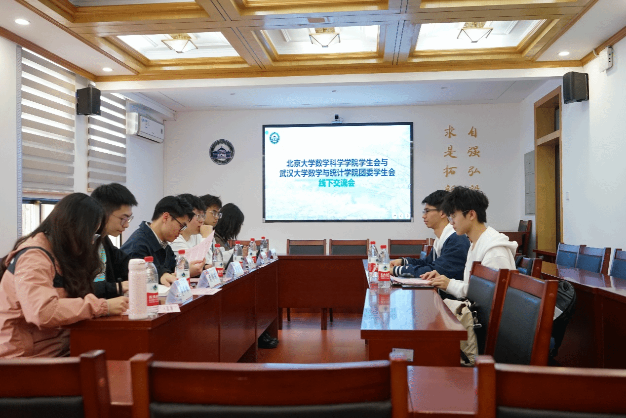 交流会分三部分进行。武大数院团委学生会骨干首先分享了武大数院团委学生会所分管的各部门的工作和职责,向北京大学数学科学学院学生会的两位同学展示了天美传媒