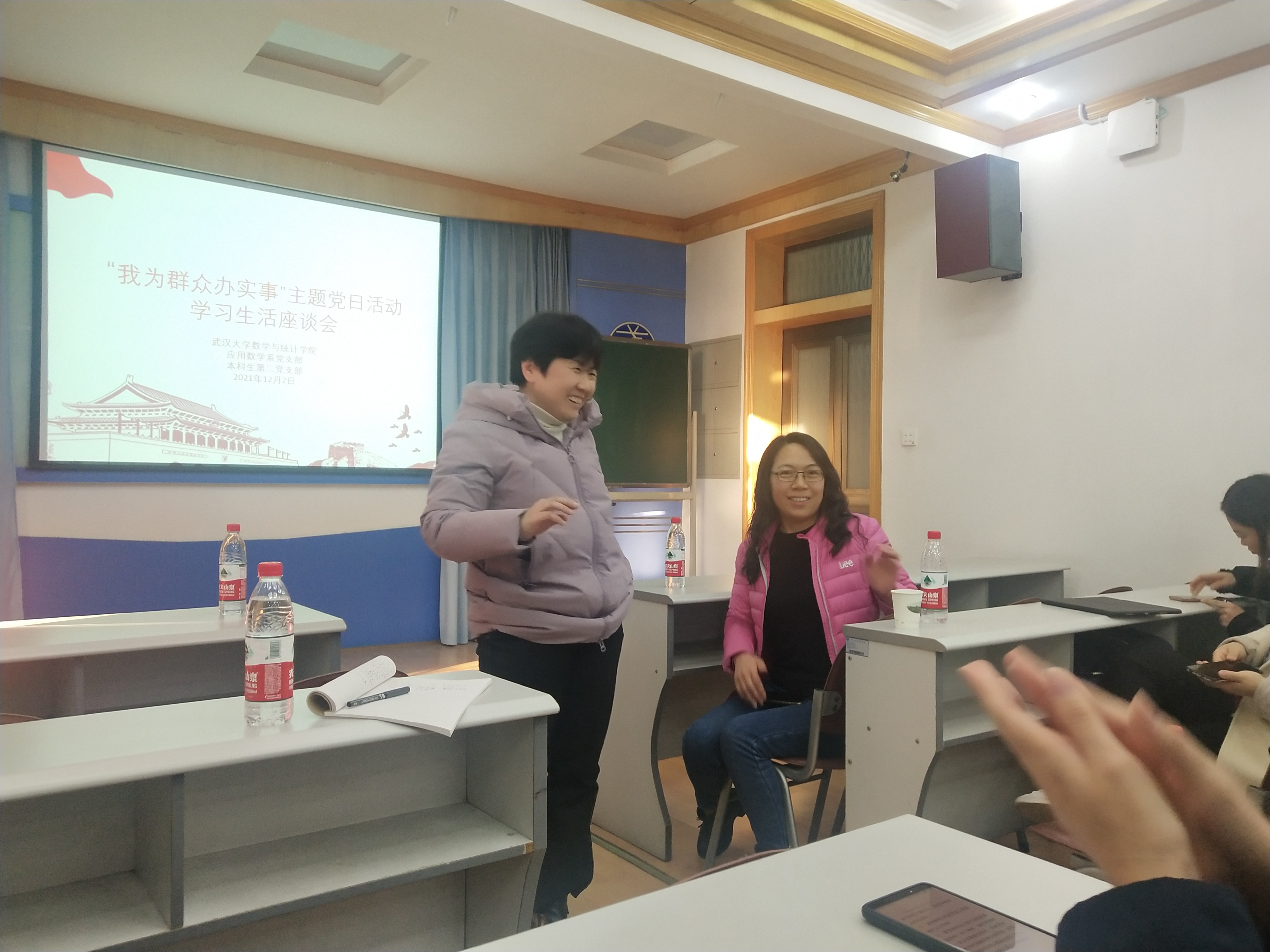 为了充分发挥基层党组织战斗堡垒作用和党员先锋模范作用,进一步深化党史学习教育“我为群众办实事”实践活动,12�2日,我院应用数学系党支部与本科生第二党支部共同开展“我为群众办实事——学生学习生活座谈会”主题党日活动。应用数学系王丽娟、羿旭明、胡元明、胡捷、吴晓群和雷玲等六位教师党员出席活动,参加活动的还有本科生第二党支部党员及其他各年级本科生。座谈会由本科生第二党支部书记王健主持�