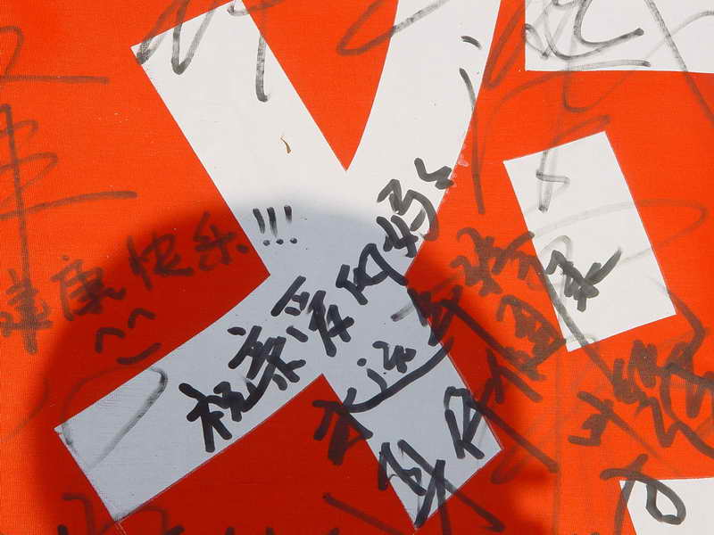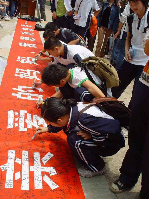 12时许,一群小朋友的加入更是让整个签名活动进入了高潮,看到一双双稚嫩的小手写下的“妈妈,我爱你”,真的让人无比的感动。整条横幅此时也因为有了他们的那份真挚的感情而更加光彩。