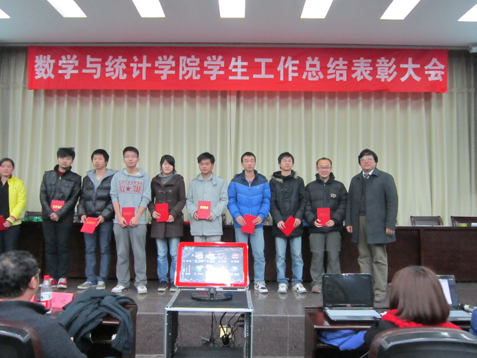 大会自晚上7点准时开始,与会的学院领导有:院长陈化教授,院党委书记张明智老师,院党委副书记吴蜀江老师,副院长赵会江、陈文艺、胡亦钧教授,基础数学系主任涂振汉教授,应用数学系主任羿旭明教授,学生工作办公室主任黄安云老师,院辅导员胡法拉老师等。