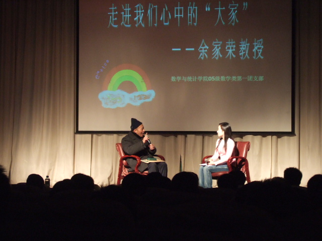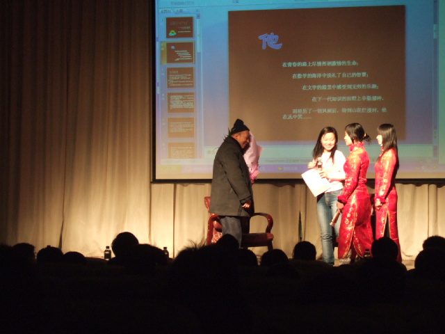 由05数类一、06数类二、06数类三组成的“123青春寻访小分队”经过积极紧张的准备,从全校125个团支部中脱颖而出终获佳绩,我们的寻访余家荣教授的成果有幸成为了晚会仅有的五个节目之一。