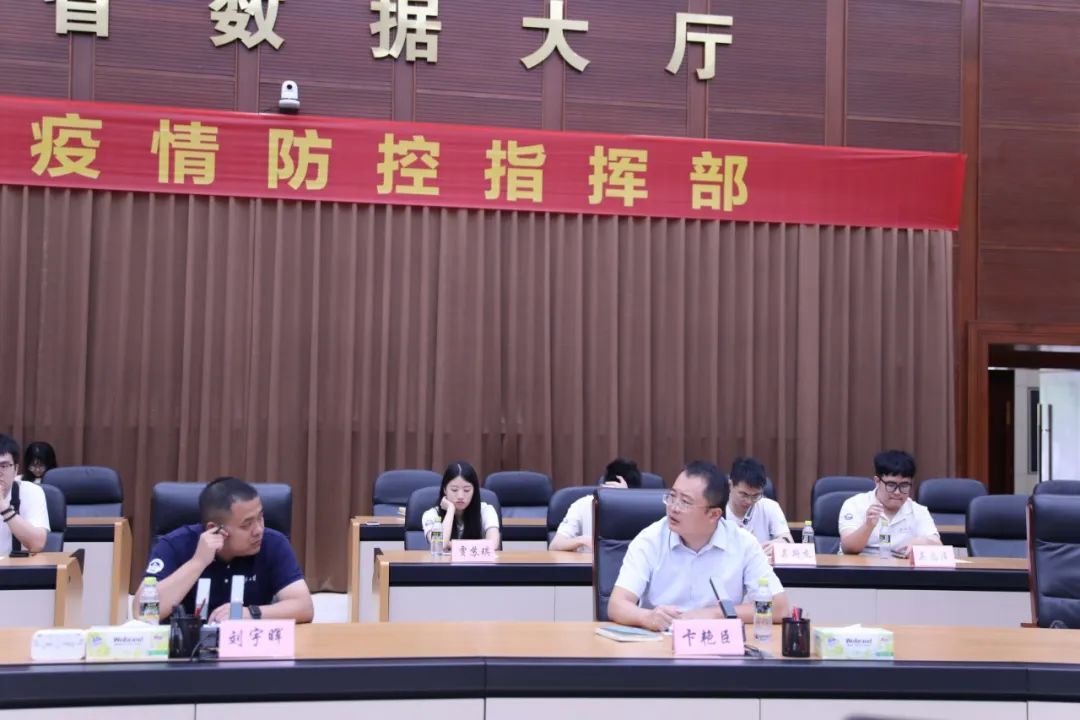 交流座谈会于数据大厅举行,海南省大数据管理局出席的嘉宾有:海南省大数据管理局局长助理、综合处处长卞艳臣,数据运营处副处长王瑶,行业应用处经理林晓丽、海南省数据产品超市首席技术官黄健强等。