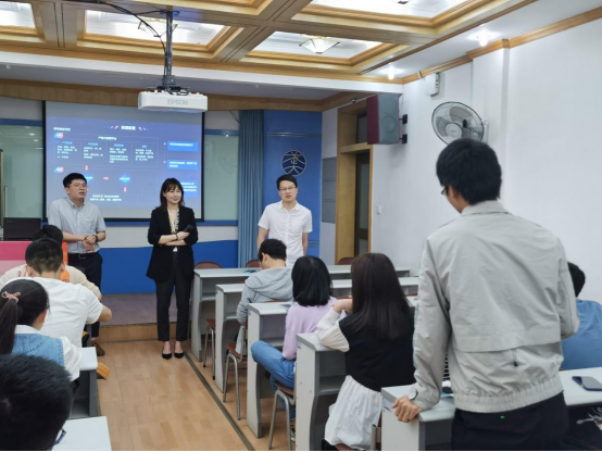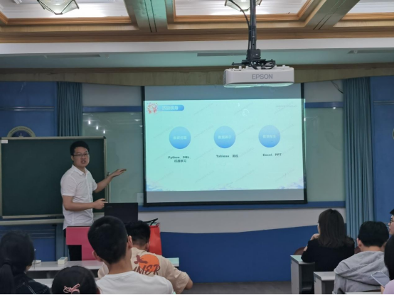 学生们讲解了数据分析的日常工作内容,朱胜利先生表示,在平安产险的数据部门实习,可以接触到大量数据,能够提升同学们的数据清洗、数据建模、数据可视化三大能力。同时,朱先生作为“过来人”,给同学们很多鼓励,希望求职的同学们能抓住每一个宝贵机会,大胆提问,大胆试错。