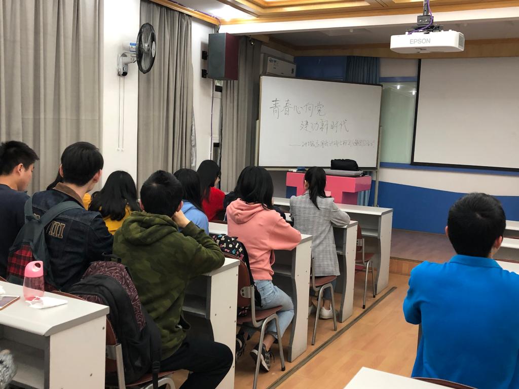 2018级应用统计硕士团支部根据《中国共产主义青年团章程》《中国共产主义青年团基层组织“三会两制一课”实施细则(试行)》有关要求,于2019年5月4日在数院205组织开展了以“青春心向党·建功新时代”为主题的团日活动。