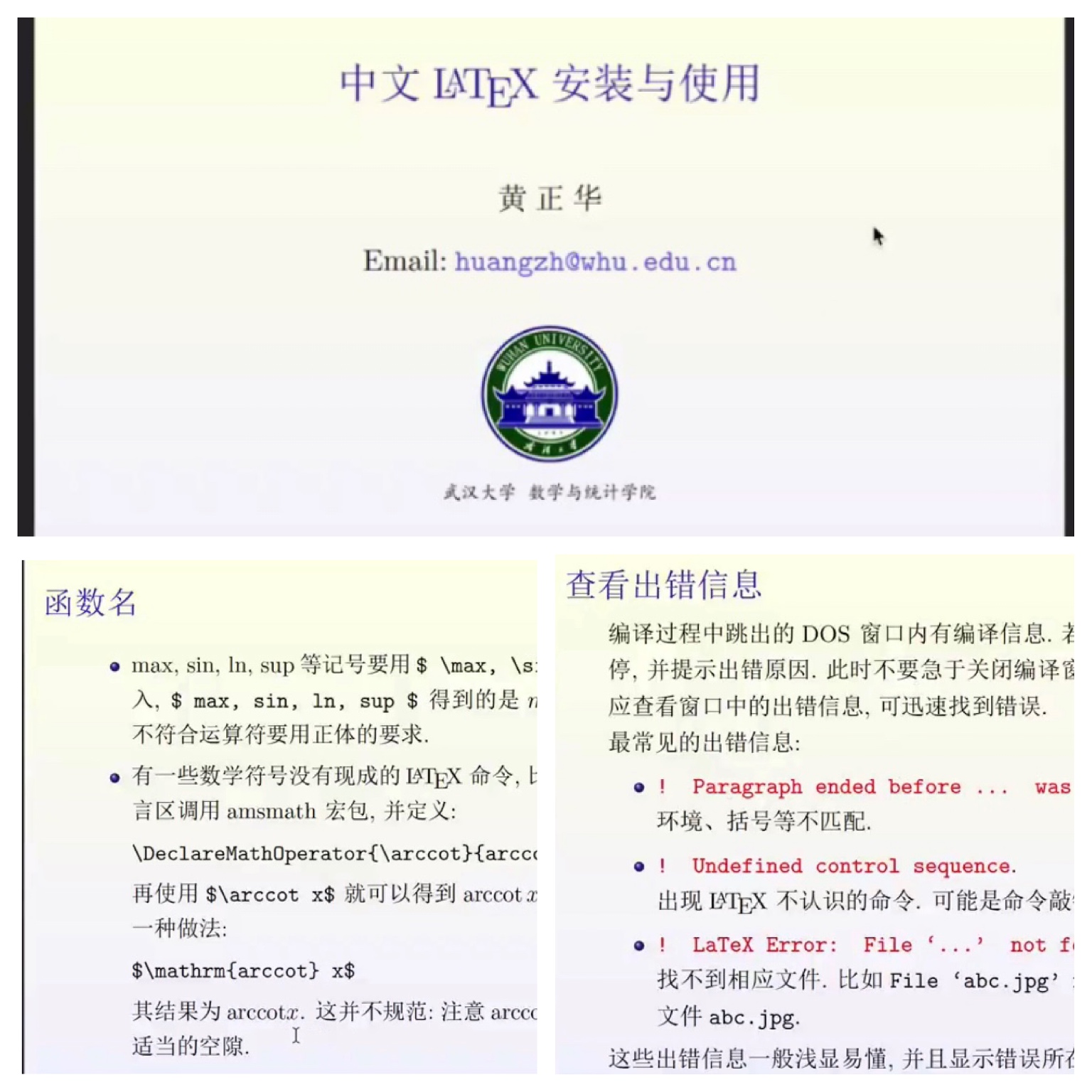 讲座第一部分,黄老师介绍了中文Latex的使用和基本安装,建议同学们在使用中学习,在使用中根据具体需求查找资料并解决问题。黄老师简单介绍了LaTex的便利性,如目录、页眉、索引的自动生成以及参考文献、定理、公式等的便捷引用。其次,在写作方面,黄老师建议在自然科学的论文中使用实心句号,避免出现混淆。关于数学运算符号的字体以及排版的一些具体细节,黄老师也进行了强调。