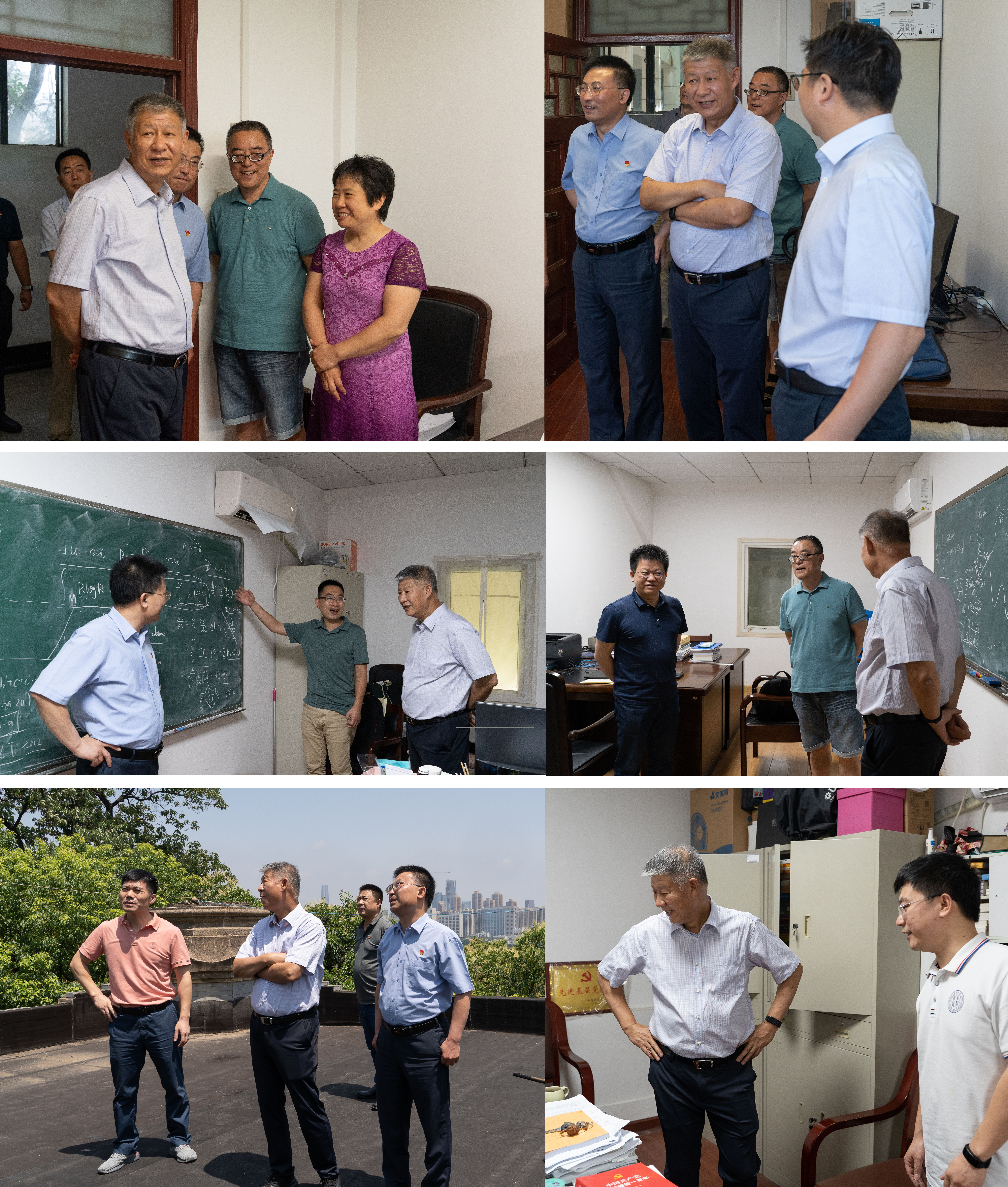 主题党日活动结束后,韩进走访我院教学科研场所,与师生谈心体察民情。他深入询问学科专业发展、师资队伍建设、教学团队建设、高水平研究成果培育、教师办公育人环境改善等事宜。他充分肯定我院工作取得的可喜成绩,表示将研究着力解决改善教师办公育人环境,进一步推进我校数学学科高质量发展。朱德友及院党政领导陪同走访。