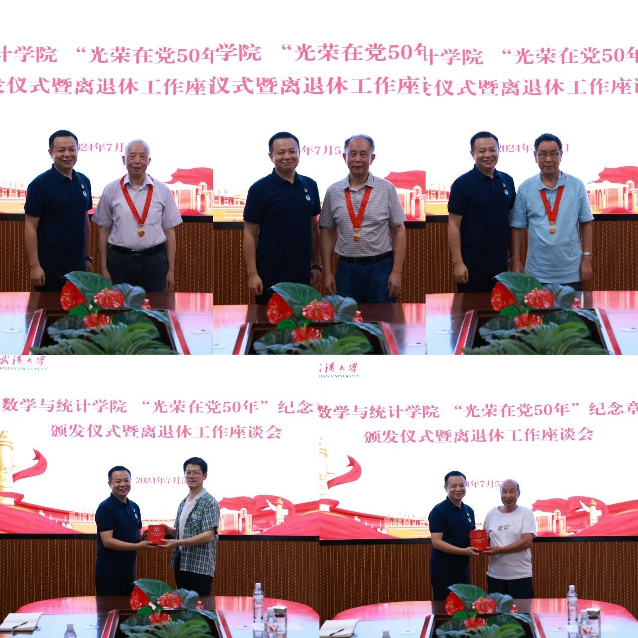中国共产党成立103周年之际,7月5日,天美传媒 举办“光荣在党50年”纪念章颁发仪式暨离退休工作座谈会,院党委书记李勤、院长赵会江、院党委副书记汪思明、刘珊珊出席会议,2024年“光荣在党50年”纪念章获得者、离退休教工党支部书记和在职教工党员代表参会。汪思明主持会议。