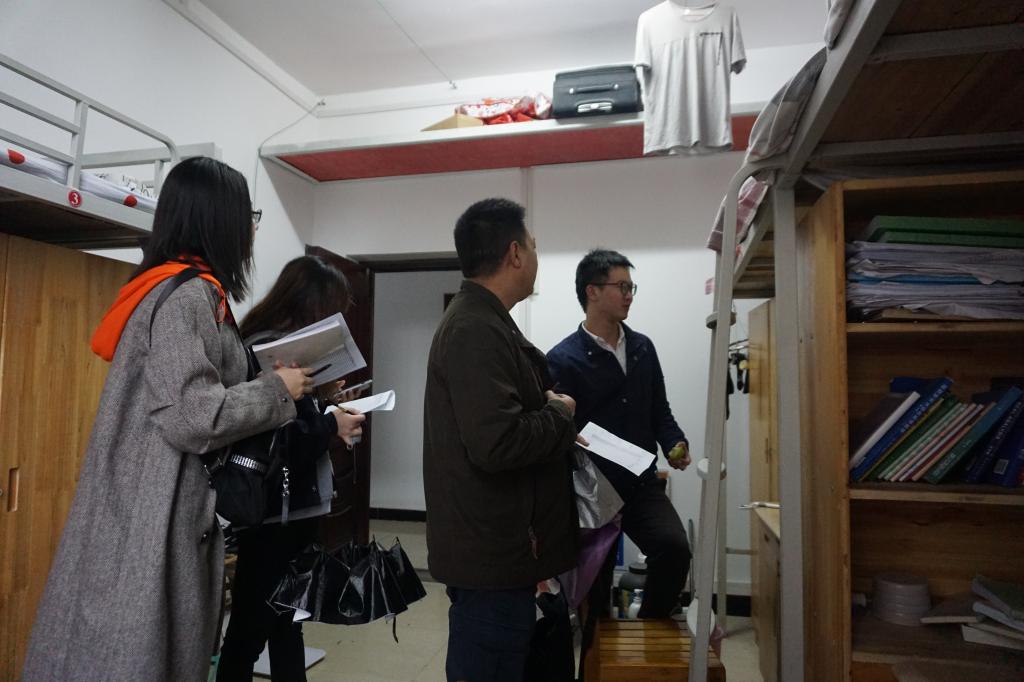 当天下午二点半,黄老师和燕老师分别带领生活部和网宣部成员们先后走访了17级男生的工学部新一栋宿舍区和18级男生的工学部十五栋宿舍区、17级和18级女生的桂三栋宿舍区进行寝室环境评比。在走访参观的过程中,老师们十分关心低年级同学的学习情况、高年级同学们在就业和升学中遇到的问题。最后也希望同学们能够保持好宿舍卫生,舍友之间和睦相处,互帮互助,营造良好的学习生活环境。